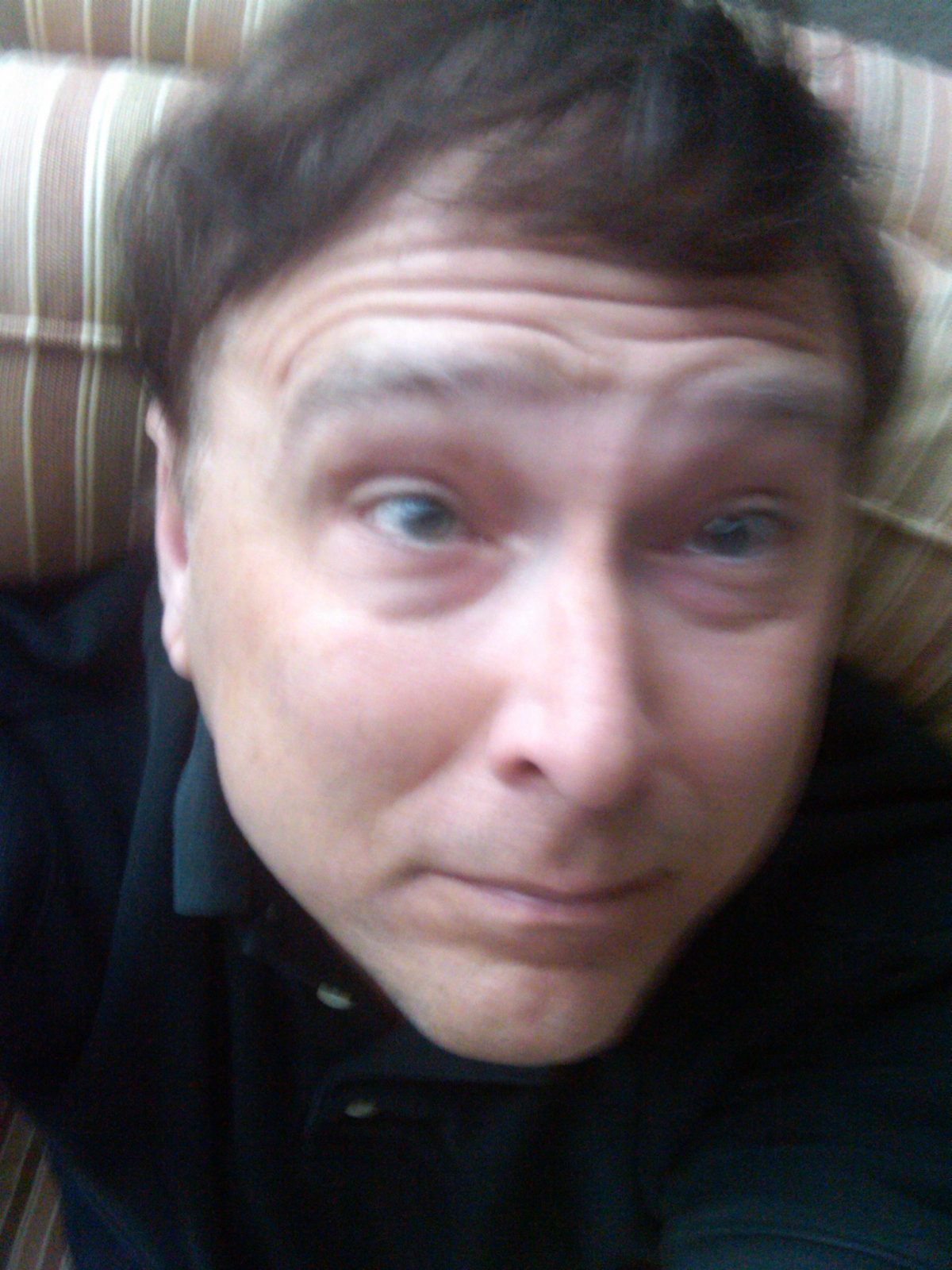 I was messing around with my BlackBerry while waiting for a phone call. Why would anyone take a picture of him or herself? Vanity. But in my case it had more to do with the fact that I now can see just enough with one eye to aim a phone camera. My right eye can’t see but the left is doing a good job of tracking where the phone is located. I’m sending this phone photo into the multiverse. My twin brother is alive somewhere on the far range of the dark matter sluice that bridges our simultaneity. Hi brother. I’m still here. I like to think I don’t look like I’ll be 55 on Tuesday. Still happy brother. Still singing to the crickets…