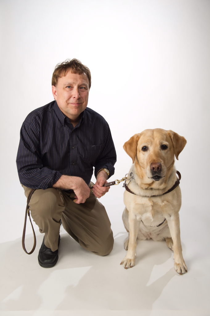 Successful guide dog work depends on cajoling. Or if not quite cajoling, elaborate praise. You’re taught to say “Good dog!” with musical sincerity and to say it throughout the working day. You say it when your dog stops at a curb. When she stops at the stairs. Or when she passes around a dropped bicycle or ignores a fallen pizza slice. “Good Dog!” You say it as if you’re learning Swedish–putting some musicality into it. Working dogs love praise. And you give praise all day. Perhaps a hundred times during a 24 hour period. She absorbs the rolling nightmare of trains and skateboarders and staggering drunks and buses running red lights and you sing to her “Good Girl!” In turn this reassurance flows backwards, fills you. You’re a competent blind guy sailing through crowded streets or down the tunnels of Grand Central Station. This competency has everything to do with letting your dog be a dog; “follow your dog” they say at the guide dog school–she knows what she’s seeing, knows what to do. Your job is to know where you want to go. Hers is to get your there. We get by on mutual instruction and tandem praise. When my dog is good I’m good. And vice versa.
